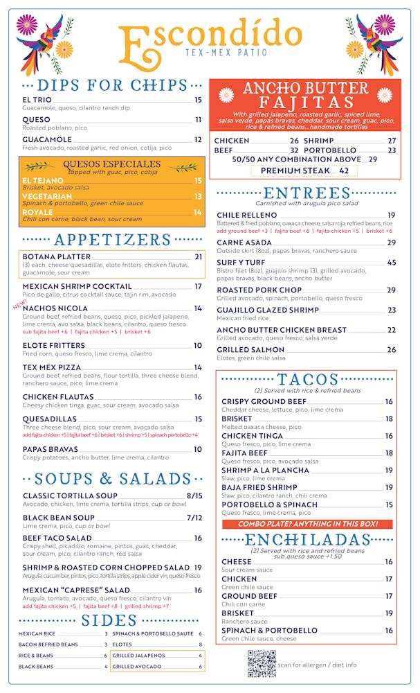 With guac, pico, sour cream, salsa verde, tortilla strips-